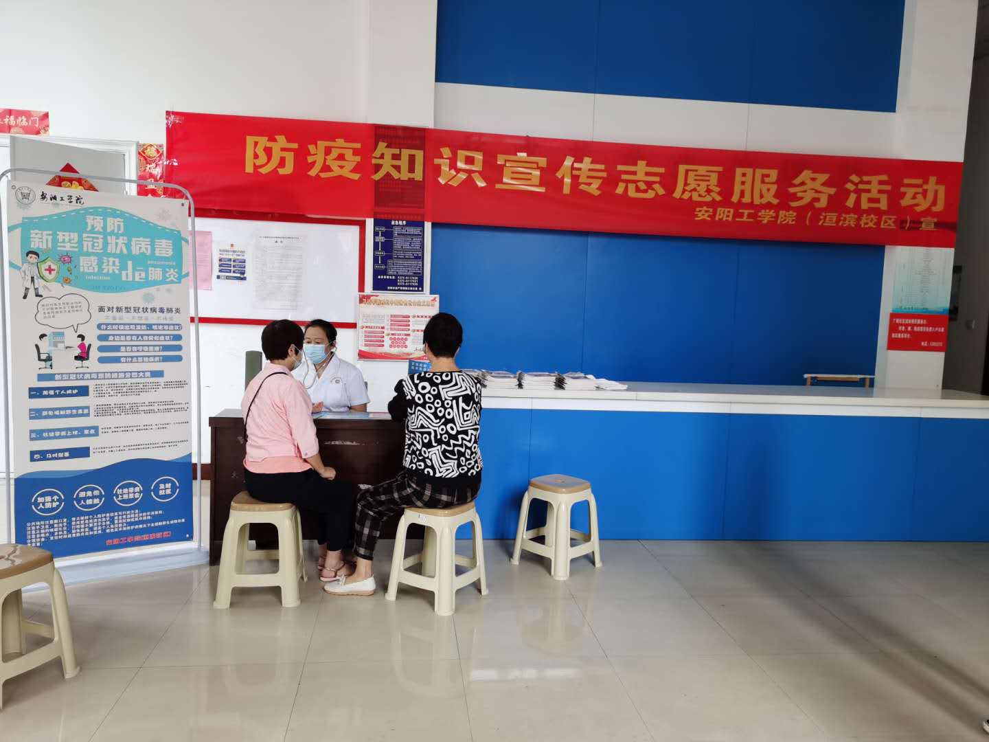 在活动现场,洹滨校区还安排校医坐诊,免费为社区居民测量血压,开展健康咨询服务。