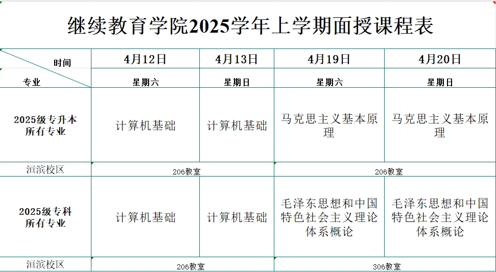 2、课程安排见《2025学年上学期线下面授总课程表》,上课期间在任课老师处签到考勤;